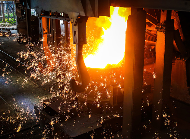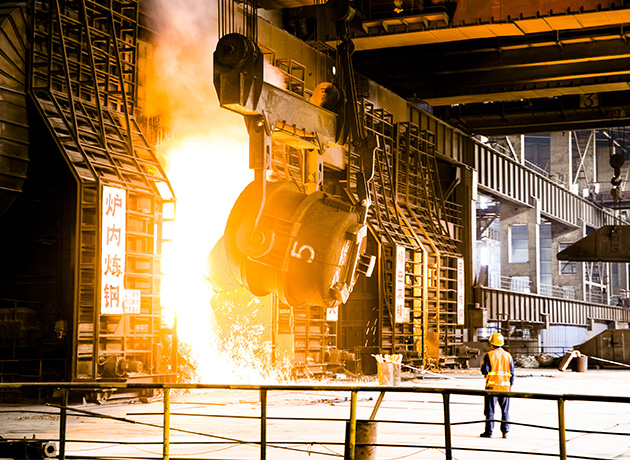 鋼花噴四海,鐵水流九州,鐵水千爐匯大海,高樓萬丈聳云天。